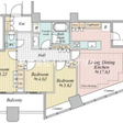 | 専有面積 | 76.32m 2 ( 23.08坪 ) | バルコニー面積 | 11.84m 2 ( 3.58坪 ) 北東向き |