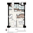 | 専有面積 | 43.2m 2 ( 13.06坪 ) | バルコニー面積 | 7.35m 2 ( 2.22坪 ) 南向き |